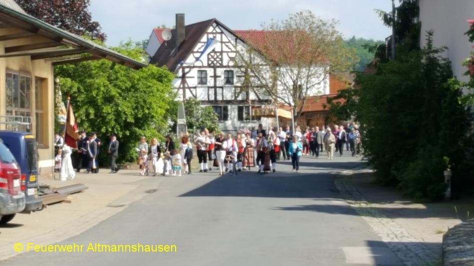 Einsatzbericht: Die FF Altmannshausen übernahm die Verkehrsabsicherung für die Fronleichnamsprozession. Ein Teil der Mannschaft nahm an der Prozession in Uniform teil.