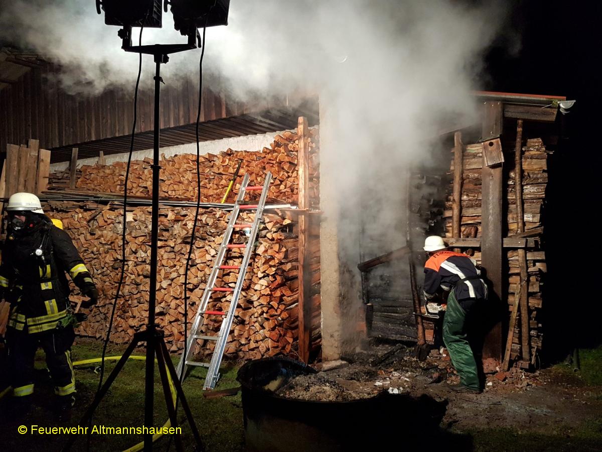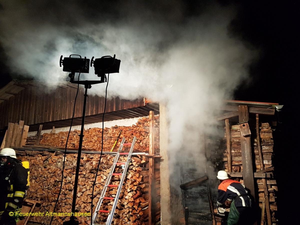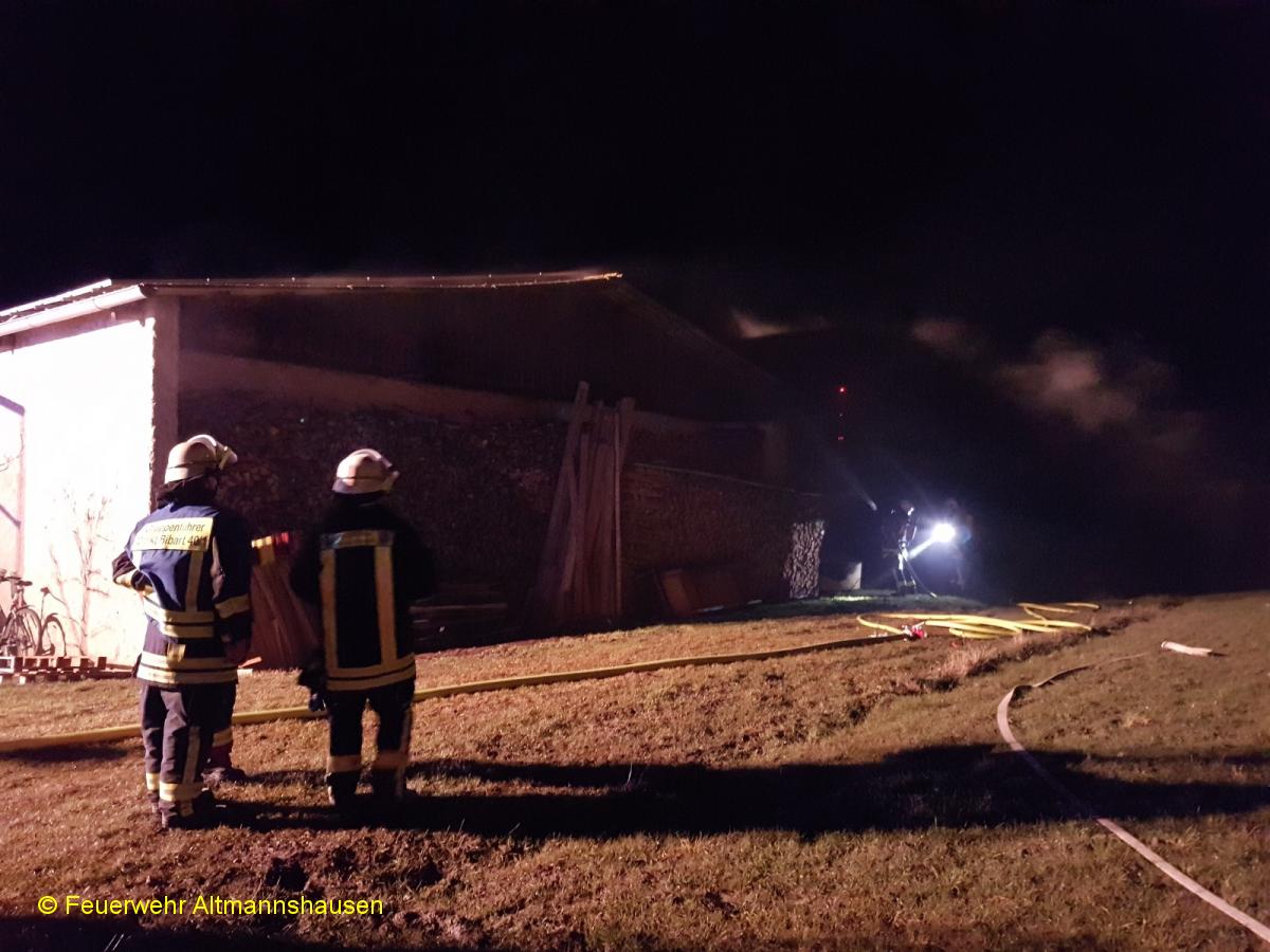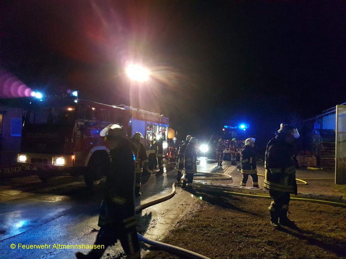 Einsatzbericht: | Zusammen mit den Wehren aus Markt Bibart, Scheinfeld und der UG-ÖEL wurden wir zu einem Brand einer Maschinenhalle alarmiert. An der Rückseite der Halle brannte ein Holzstoß, das Feuer begann schon auf die Dachkonstruktion überzugreifen. Durch einen schnellen Löschangriff konnte das Feuer schnell gelöscht werden und größerer Schaden verhindert werden. Ein Atemschutztrupp erkundete mehrmals die Halle von innen mit einer Wärmebildkamera, glücklicherweise ohne Feststellung. Die Nachlöscharbeiten gestalteten sich schwierig, der Holzstoß musste Stück für Stück abgetragen und abgelöscht werden. Anschließend stellten wir noch eine Brandwache. | ||||||