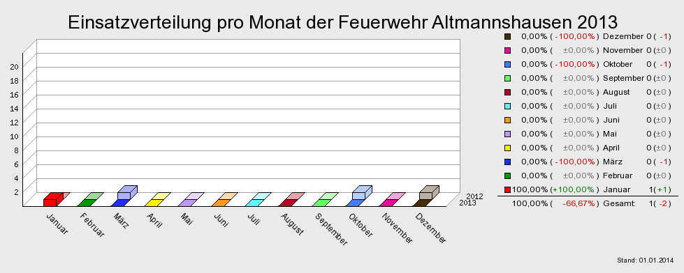 Einsatzverteilung pro Monat der Feuerwehr Altmannshausen 2013