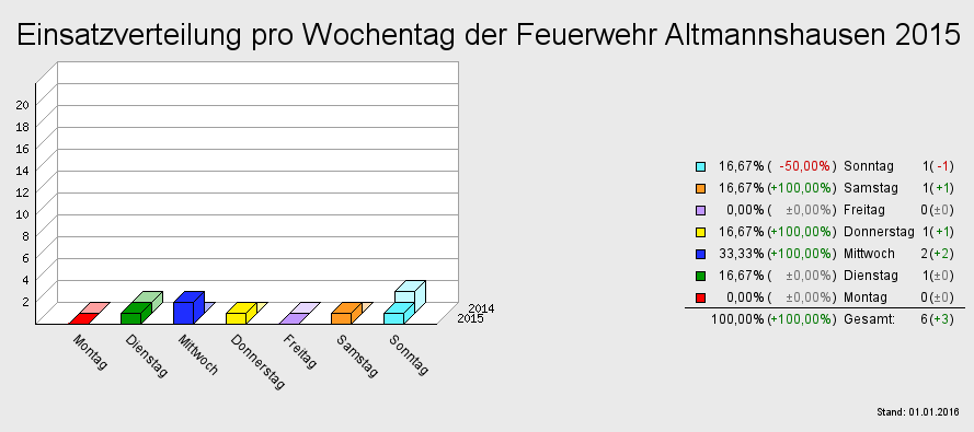 Einsatzverteilung pro Wochentag der Feuerwehr Altmannshausen 2015