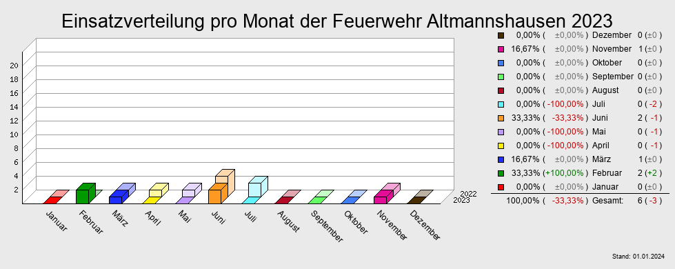 Einsatzverteilung pro Monat der Feuerwehr Altmannshausen 2023